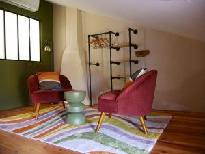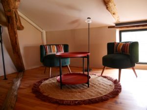 - Espace salon avec fauteuils et table basse