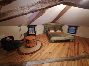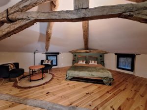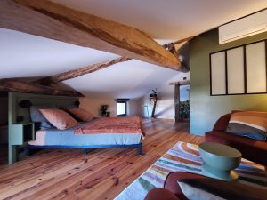 Après un grand couloir où la tommette rappelle l’origine de la construction du Pigeonnier de Pauly, accédez à la chambre Picasso avec 1 lit 160, rangements, une salle d’eau privative avec douche lavabo et toilettes sèches. Au 1er étage deux autres chambres : la chambre Derain avec 1 lit 160, une salle d’eau privative avec douche, lavabo, toilettes sèches et la chambre Véronèse avec 1 lit 160, une salle d’eau privative avec douche, lavabo, toilettes sèche. Toutes les chambres sont climatisées